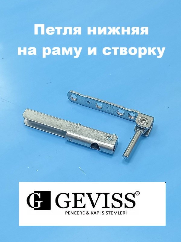 Петля нижняя створки имеет регулировку по высоте створки и по прижиму.